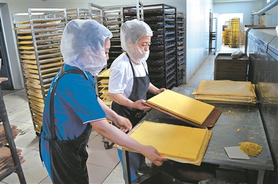 四平惠丰林食品有限公司是以传承满、汉等民族饮食文化为精髓,打造地道东北传统食品的一家食品公司。主营产品包括东北传统糕点、面包、饼干、蛋糕等,产品销往沈阳、广州、深圳等地。全媒体记者 宋莹莹 摄