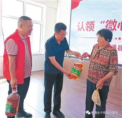 近日,伊通永宁街道福康社区党建联盟成员单位县商务局来到福康社区为困难群众圆梦“微心愿”,为居民排忧解难,发挥社区能量、架起服务群众“连心桥”。