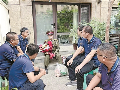 本报讯(通讯员 王军)日前,华生燃气集团铁东公司部分退役军人及党员干部带着鲜花和水果,看望辖区老兵黄新全,送去致敬与祝福。