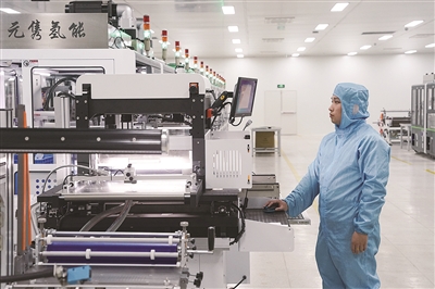 3月11日,工人在安徽元隽氢能科技股份有限公司质子交换膜生产线上工作。近年来,安徽省滁州市全椒县抢抓新能源汽车产业发展的窗口期、机遇期,积极培育新能源汽车配套产业,产业链逐步完善,产业竞争力不断提升。截至2024年底,该县拥有新能源汽车相关产业链企业119家,逐步形成以氢能、动力电池、节能内燃机为主的新能源产业集群。杜宇 摄