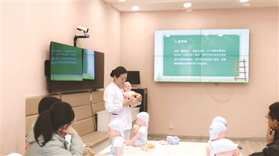 3月28日,市妇婴医院孕妇学校开课,产科护士陈鑫为准爸妈讲解新生儿护理及游泳注意事项,帮助新手爸妈科学育儿。通讯员 陆芃竹 摄