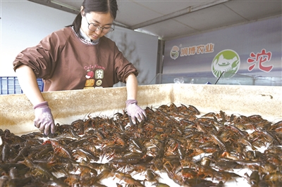5月15日,在蚌埠市五河县沱湖乡大岗村,工作人员在分拣小龙虾。立夏过后,小龙虾消费市场日渐火热。在安徽省蚌埠市五河县沱湖乡大岗村,养殖户们忙着捕捞、分拣小龙虾,供应市场。近年来,五河县依托当地优质水域资源,大力发展小龙虾养殖业。目前,五河县小龙虾养殖面积约6万亩,年产量达8000吨。