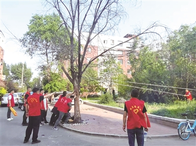 为进一步营造安全、整洁、文明的社会环境,解决居民生活中的安全隐患,近日,铁东区住建局开展志愿服务活动,对城区内存在倒伏隐患的树木进行处理。