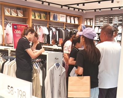 6月15日,正值父亲节,我市各大商场男装店内顾客盈门,商家也推出相应的满减活动,消费者们穿梭于陈列架间,挑选衬衫、服饰等礼物,温馨氛围中,尽显对父亲的敬爱与感恩。