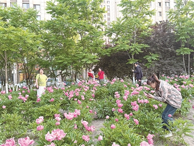 近日,在市南湖公园南侧,芍药花争先盛放,吸引了市民游人驻足观赏、拍照留念,花香与笑意交融,感受夏日美好。