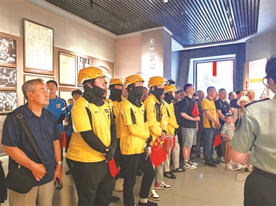 活动伊始,全体人员在讲解员的带领下参观了四平战役纪念馆。一幅幅历史照片、一件件珍贵文物,生动再现了革命先烈为民族解放浴血奋战的壮烈历程。外卖骑手小哥感慨道:“今天的幸福生活来之不易,我们要把红色精神融入日常,在送餐路上也要当好先锋兵。”