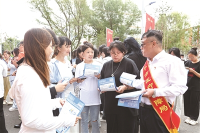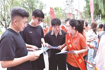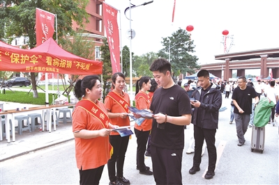 政策宣讲直击学生关切,打通服务“最后一公里”。在院校报到的集中区域,“医保宣传进校园 护佑健康保周全”等横幅十分醒目,写有“国策惠民、健康相随”等鲜艳旗语处处暖心。
