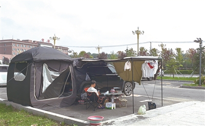 在旅游方式不断推陈出新的当下,房车旅行呈现蓬勃发展态势,众多旅游爱好者加入房车旅行队伍,带着移动的“家”,体验各地风土人情。图为来自广东的游客在梨树南河公园驻车点补给休息。