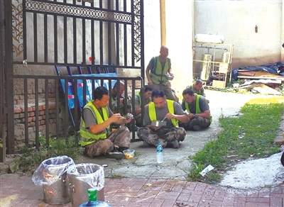 | 席地午餐蓄能量 争分夺秒抢工期 |