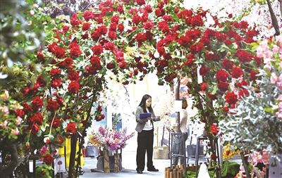 10月23日,工作人员在仿真花展台洽谈。 10月23日,第138届广交会第二期开幕,以“品质家居”为主题,集中展示家庭用品、礼品及装饰品、建材及家具3大板块。二期线下展览总面积51.5万平方米,展位2.5万个,参展企业超1万家。 邓华 摄