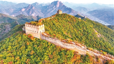 10月25日拍摄的董家口长城秋色。 深秋时节,位于河北秦皇岛的董家口长城沿线层林尽染,呈现壮观景色。 陈晔华 摄