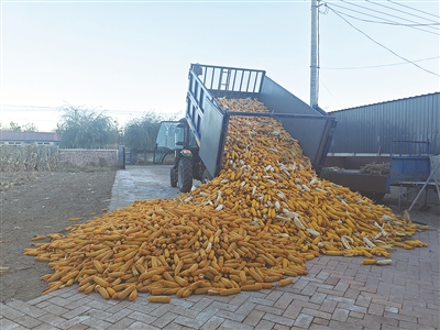 目前,各地秋收已进入尾声,经过一年的辛勤耕耘,农户们收获满满。这是梨树县刘家馆子镇一农户正在卸下收获的玉米。