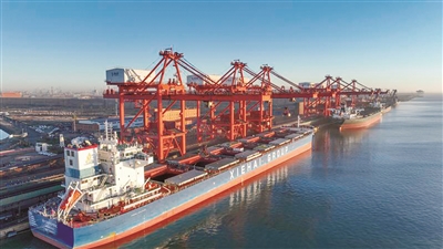 冬季即将来临,河北省唐山港京唐港区煤炭堆场、码头一片忙碌景象,工人们加紧进行电煤转运、装船等工作,全力保障电煤供应。