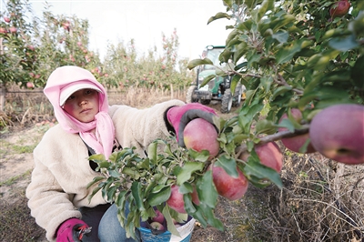 农户在中卫市沙坡头区“旱苹果”种植基地采摘苹果。 地处黄河之畔、腾格里沙漠边缘的宁夏中卫市沙坡头区,近年来通过实施新品种种植、土壤培肥改良、新技术推广、产销一体化等措施,积极发展“旱苹果”产业。目前沙坡头区苹果种植涵盖富士、元帅等30多个品种,总产量15.4万吨,综合产值超过8亿元。 王鹏 摄