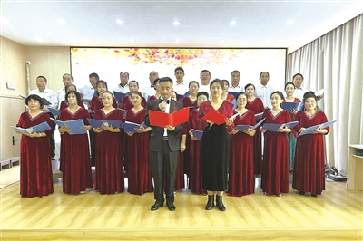 为丰富社区老年人精神文化生活,日前,梨树县幸福社区联合县新时代文明实践中心、幸福社区合唱团开展主题文化活动,以歌舞、戏曲、乐器演奏等多样艺术形式,为社区老人们送上一场精彩的“文化大餐”。本报通讯员 刘磊 摄