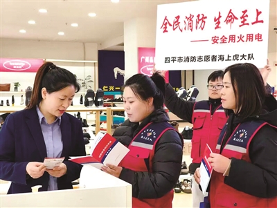 本报讯(记者 刘莉)今年11月9日是第34个全国119消防宣传日,当天,市消防志愿者海上虎大队携手共青团吉林师范大学博达学院委员会、博达学院青年志愿者协会共同开展消防安全宣传活动。