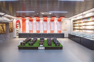 梨树中医药博物馆由梨树县中医院创办,展陈面积4500平方米,共设13个展区,展陈藏品13000余件,涉及名医著作、医史、医诊、医药标本、药食同源等多个方面,充分展示了中医药文化的传承和发展。图为聚贤台展区,25个药箱代表梨树县中医院创业初期的25名草根医生治病救人的事迹。