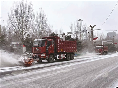 11月30日,我市迎来降雪天气,环卫部门迅速响应,出动清雪车辆进行清雪作业,保障道路通行安全畅通。本报记者 杨天驰 摄
