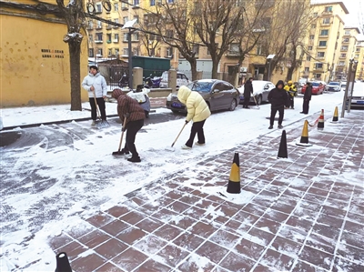 本报讯(记者 王明纯)为确保道路畅通,守护辖区居民出行平安,近日,铁西区北河社区组织辖区内党员和志愿者,对无物业小区的路面积雪进行了集中清理。