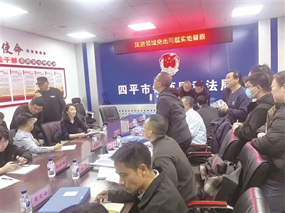 为落实中央依法治国办督察工作需要,近日,市委依法治市办督导组赴铁西区开展实地督导。督导组通过座谈访谈、查阅资料、实地走访等方式,从“落实政治责任、制定方案举措、整改工作效率、工作保障情况”等方面,对督察整改工作情况进行督导检查。