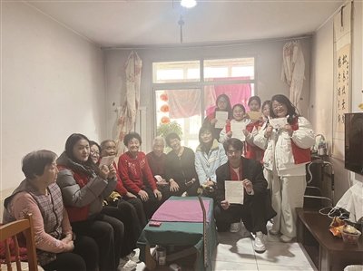 本报讯(记者 张宪双)近日,铁西区英雄街道师大社区联合吉林师范大学博达学院旅地学院开展“纸短情长 敬念安康”关爱老人活动。20余名大学生志愿者带着手写的祝福卡片,走进社区高龄老人家中,用暖心陪伴传递温情,其中一位百岁老人的专属祝福环节,更让整个活动充满感动。