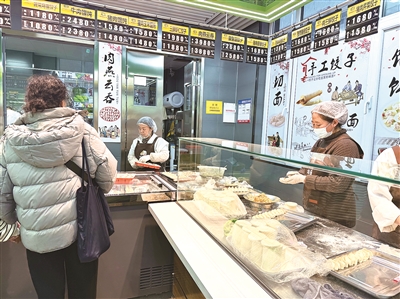 近日,铁西区一市场手工饺子区域,工作人员正现场包制水饺并打包装盒。价格明晰的各类面食,既保留了手工制作的烟火气,又为工作忙碌的人们解决了吃饭难题,便捷打包的特性尽显市井饮食的贴心与温度。