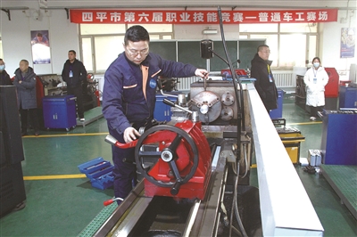 12月3日,四平市第六届职业技能竞赛在四平职业大学开赛。本次竞赛将选拔第六批“四平工匠”和“四平市技术能手”,获胜选手将代表我市参加吉林省第三届职业技能大赛。这是普通车工项目竞赛现场。本报记者 刘莉 摄