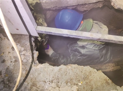 到达现场后,维修人员立刻投入工作,焊接技师王纪明弯腰俯身钻进狭窄的作业区域对漏点进行详细勘查,确定腐蚀严重程度和漏点的具体位置。考虑到冬季气温较低,为了不影响单元用户的正常用热,电大所决定采取管卡修复法进行紧急处置。漏点位于管线隐蔽位置,空间狭窄得仅能容纳一人半蹲作业,王纪明只能蜷缩着身体,双腿长时间保持弯曲姿势。更严峻的是,由于管线压力大,热水如喷泉般溅起,高温水花不断溅到王纪明脸上和眼睛上,他只能眯着眼睛,凭借着多年的经验和感觉,小心翼翼地操作着手中的工具。经过精确的定位和有序操作,漏点得到了有效控制。