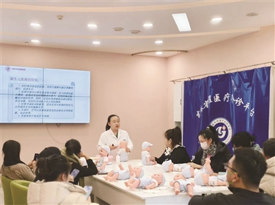 12月12日,市妇婴医院孕妇学校新生儿抚触及洗澡实操课温馨开讲,经验丰富的护师孙奇化身“育儿导师”,带领齐聚一堂的新手爸妈们,认真学习迎接新生命的第一堂“必修课”。