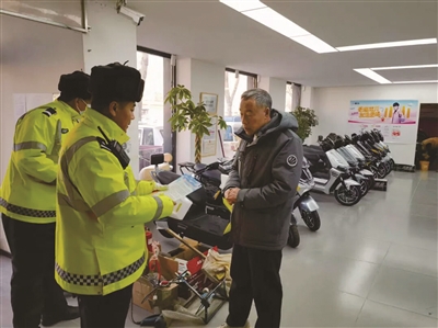 为从源头防范电动车交通事故风险,切实增强电动车销售者与消费者的交通安全意识,近日,市交管支队铁东大队组织警力深入辖区各电动车售卖点,开展交通安全源头宣传活动,精准传递“一盔一带”安全理念。