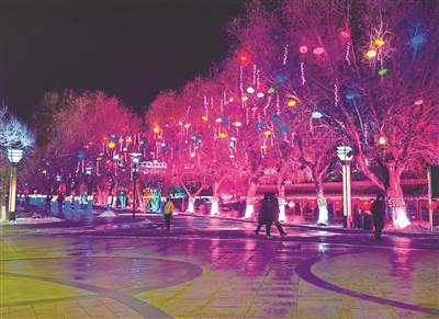 冬日夜晚,南湖公园华灯璀璨,各式彩灯将园内装点得流光溢彩。 本报记者 高强 摄