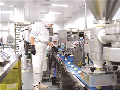 四平市佳年华食品有限公司成立于2007年,是集生产、研发、销售为一体的现代化食品企业,拥有1家中央工厂和15家直营门店。图为铁东区佳年华食品加工厂正在加工糕点。